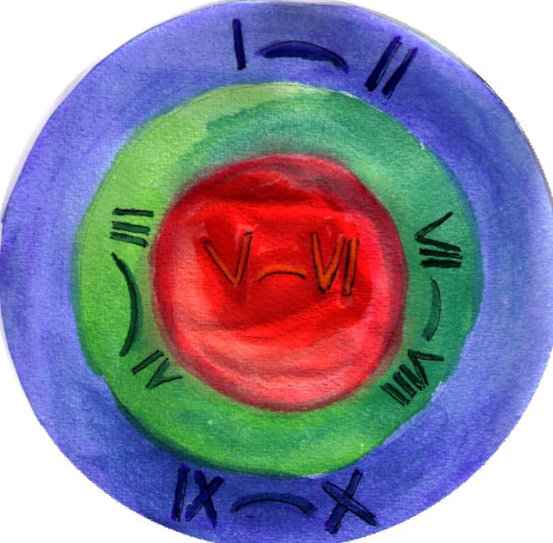 Wenn Sie sich die Zeit und die Mühe nehmen, die Sequenz aufzuschlüsseln, kann die Geistkraft vielleicht auch als Gast bei uns erkannt werden. Als kleines Hilfsmittel zur Erkennung der Sequenzstruktur habe ich die Zuordnung der Strophen auf einer Schale sichtbar gemacht. Wobei ich im Zentrum in der roten Mitte das Wehen und Stürmen versucht habe, einzufangen.