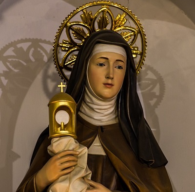 Klara lebte ein zurückgezogenes, eng begrenztes Leben hinter dunklen Klostermauern in Stille und Anbetung. Als sie ab 1226 bettlägerig wurde, blieben ihr nur noch das Anfertigen von Paramenten und das Gebet. Doch um so mehr strahlte ihr Licht aus ihrem weit geöffneten Herzen hinaus in die Welt. Und sie war bis zu ihrem Tod für unzählige Menschen Seelsorgerin, Trösterin und Ratgeberin. Sie konnte sogar durch bloßes Gebet oder ein Kreuzzeichen heilen, nur sich selbst offenbar nicht, wohl weil sie stellvertretend leiden wollte. Sie liebte es, besonders die Menschwerdung, die Eucharistie und das Leiden Jesu zu betrachten.