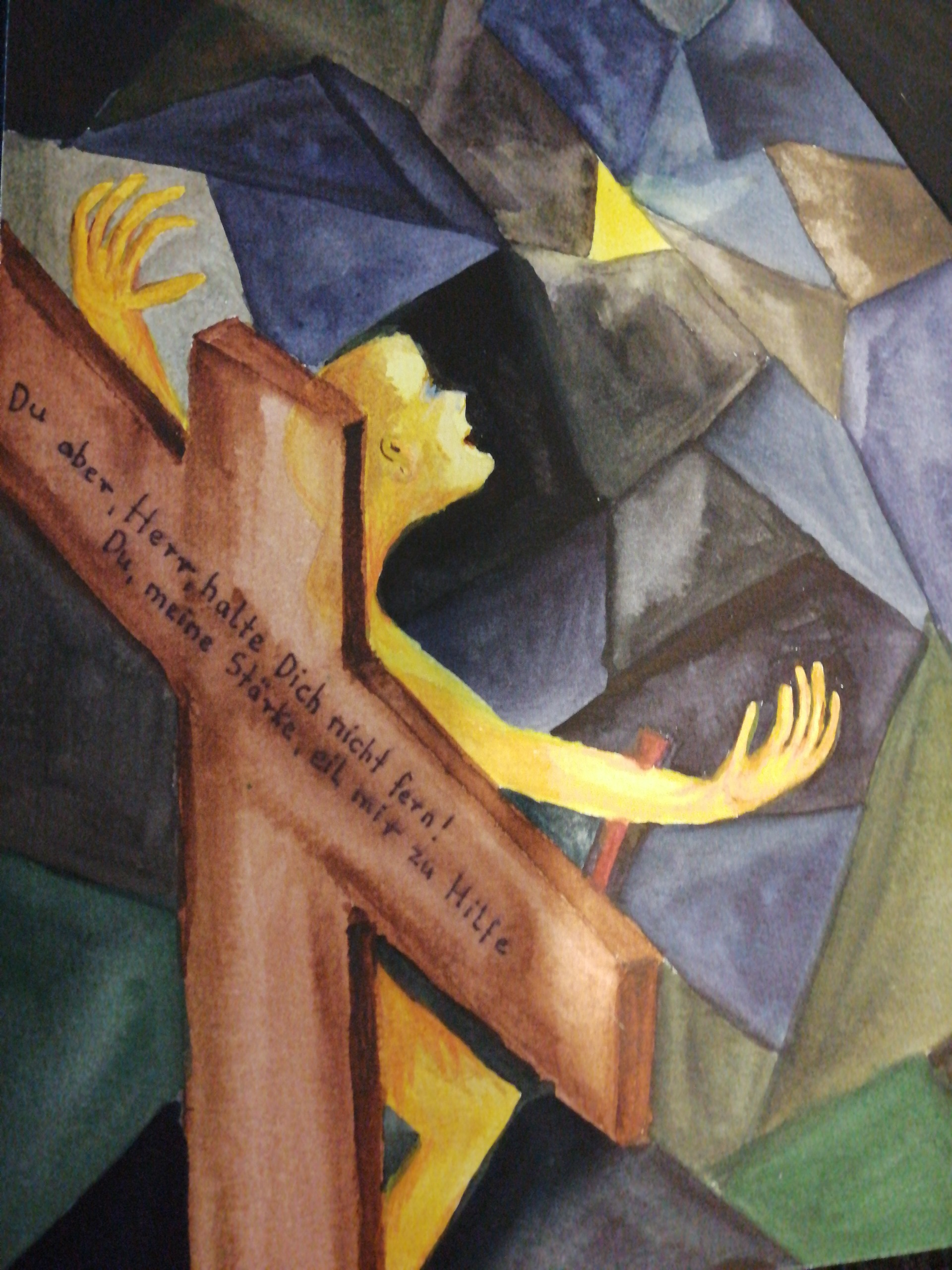 Nackt und ganz allein hängt der Mensch am Kreuz. In seiner Not wendet er sich an Gott. (Vers 20) Du aber, Herr, halte dich nicht fern! Du, meine Stärke, eile mir zur Hilfe.